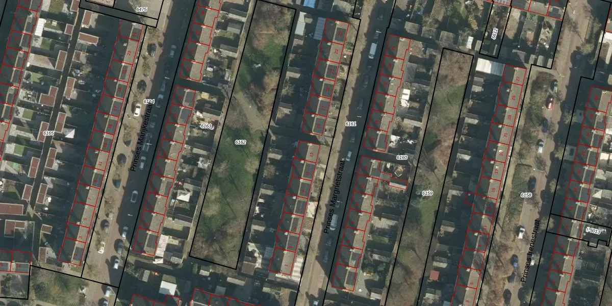 Prinses Margrietstraat 13 is gelegen op kadastraal perceel GRC00A6163. Deze kadastrale aanduiding is uniek en wordt gebruikt door het Kadaster om eigendomsrechten en andere zakelijke rechten vast te leggen. Het perceel maakt onderdeel uit van de kadastrale gemeente Gorinchem.