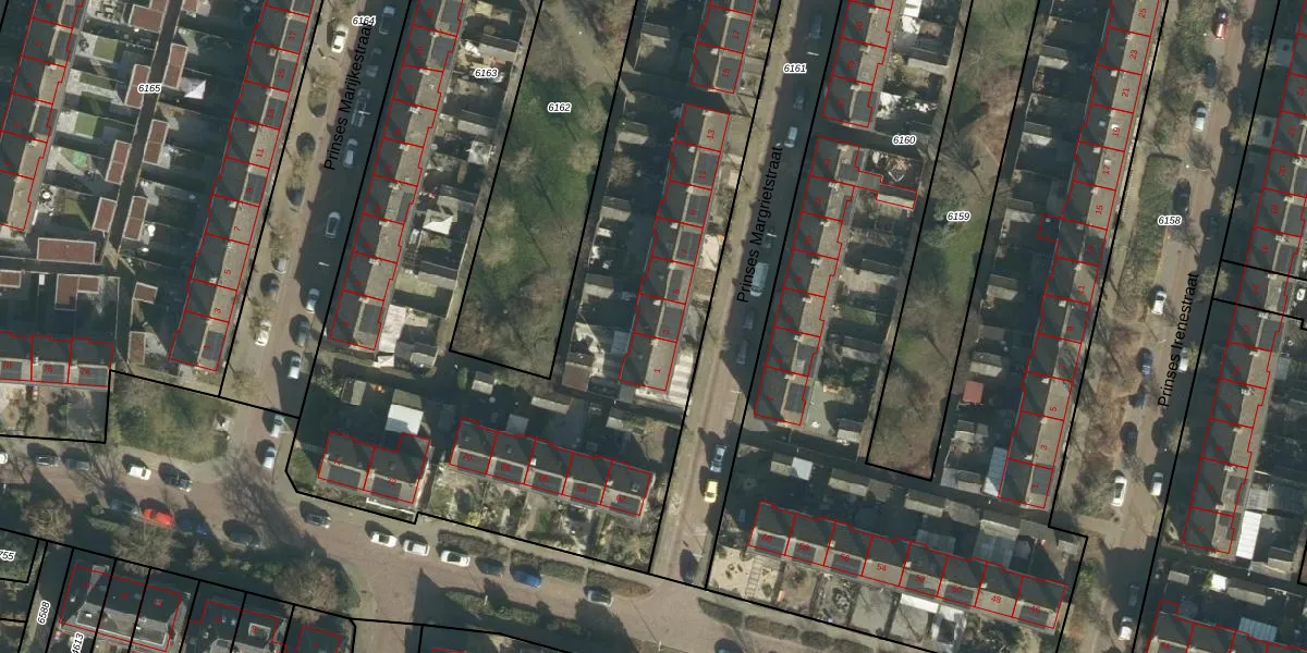 Het perceel waarop Prinses Margrietstraat 3 staat heeft een oppervlakte van 6265 m². Dit is een zeer groot perceel. De perceeloppervlakte wordt geregistreerd door het Kadaster. Gedetailleerde informatie over de maten van dit perceel kunt u vinden in het rapport Kadastrale kaart met maatvoering van Prinses Margrietstraat 3.