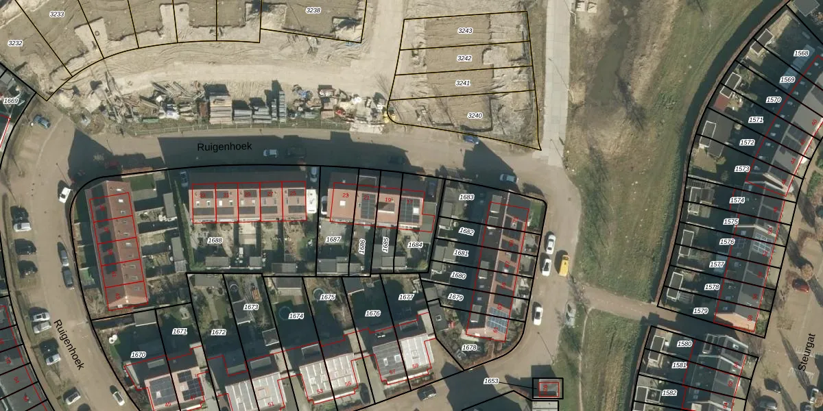 Het perceel waarop Ruigenhoek 17 staat heeft een oppervlakte van 225 m². Dit is een middelgroot perceel. De perceeloppervlakte wordt geregistreerd door het Kadaster. Gedetailleerde informatie over de maten van dit perceel kunt u vinden in het rapport Kadastrale kaart met maatvoering van Ruigenhoek 17.