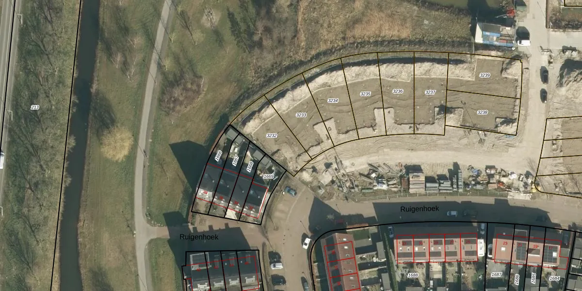 Ruigenhoek 30 is gelegen op kadastraal perceel GRC00P3232. Deze kadastrale aanduiding is uniek en wordt gebruikt door het Kadaster om eigendomsrechten en andere zakelijke rechten vast te leggen. Het perceel maakt onderdeel uit van de kadastrale gemeente Gorinchem.