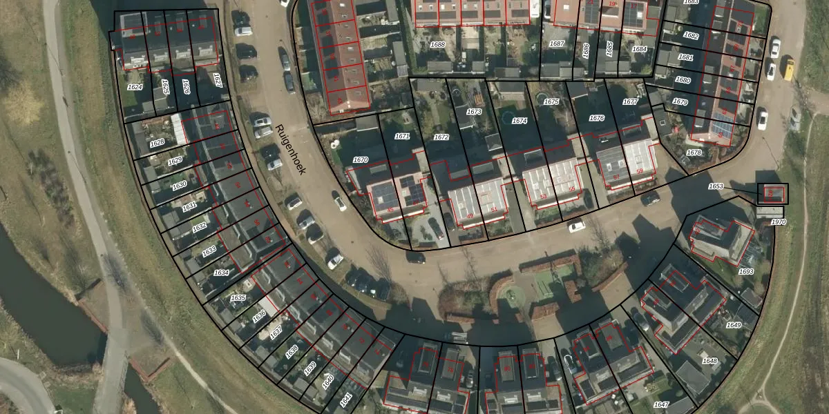 Gebruik de zoekbalk of klik op een perceel voor informatie over de adressen binnen dit perceel.