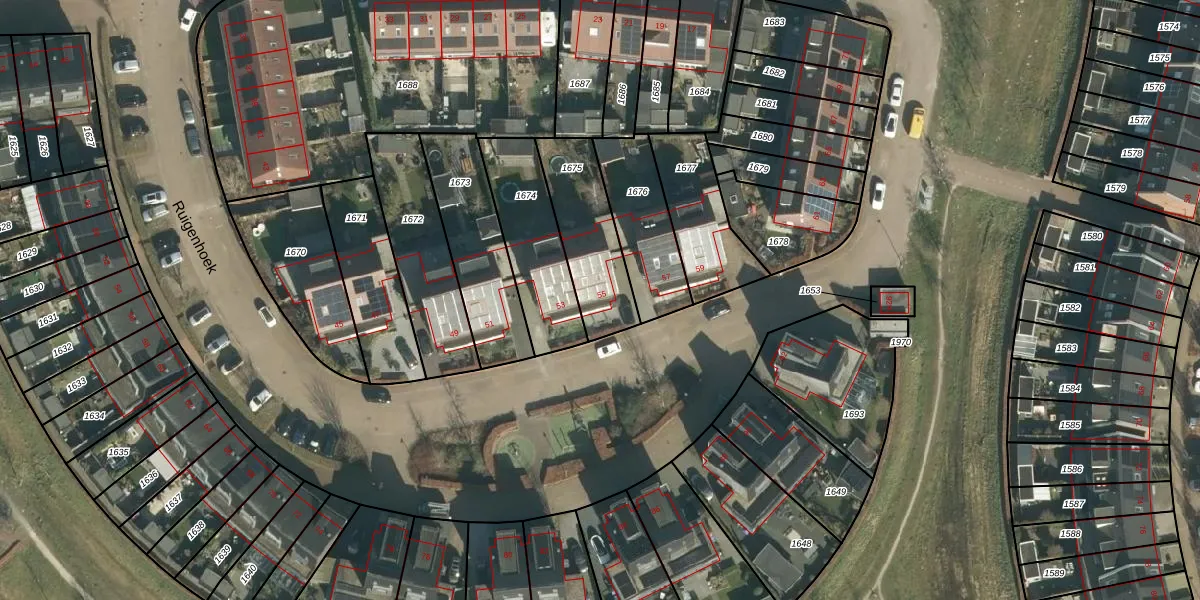 Gebruik de zoekbalk of klik op een perceel voor informatie over de adressen binnen dit perceel.