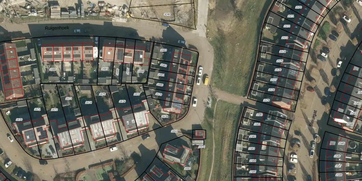 Gebruik de zoekbalk of klik op een perceel voor informatie over de adressen binnen dit perceel.