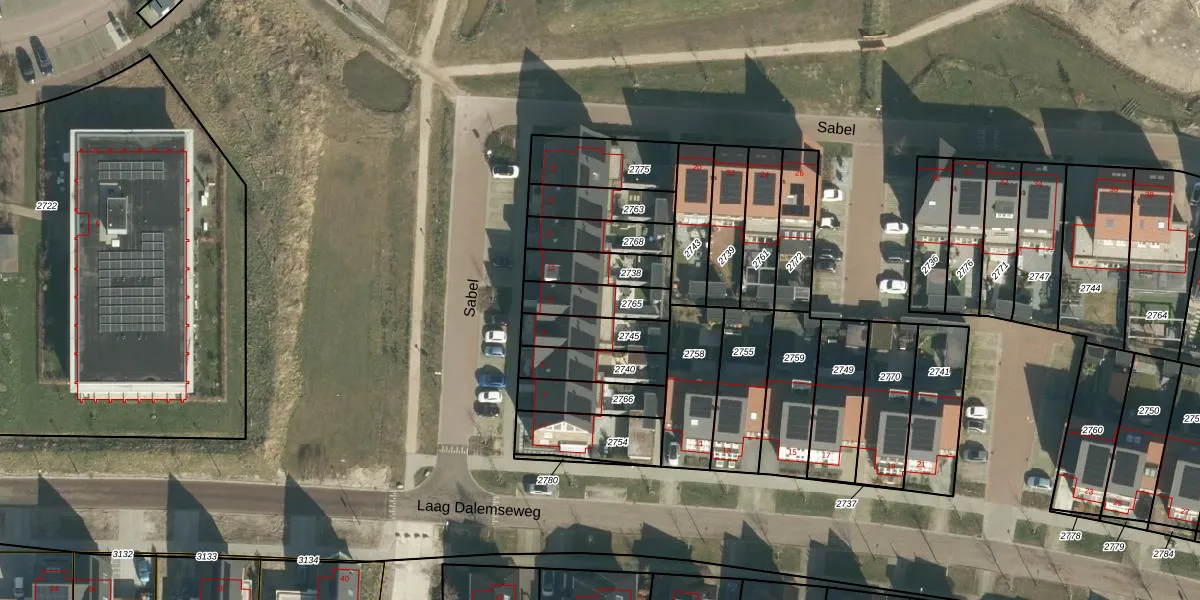 Gebruik de zoekbalk of klik op een perceel voor informatie over de adressen binnen dit perceel.