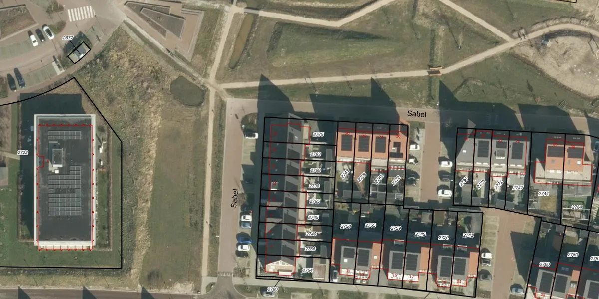 Het perceel waarop Sabel 16 staat heeft een oppervlakte van 133 m². Dit is een middelgroot perceel. De perceeloppervlakte wordt geregistreerd door het Kadaster. Gedetailleerde informatie over de maten van dit perceel kunt u vinden in het rapport Kadastrale kaart met maatvoering van Sabel 16.