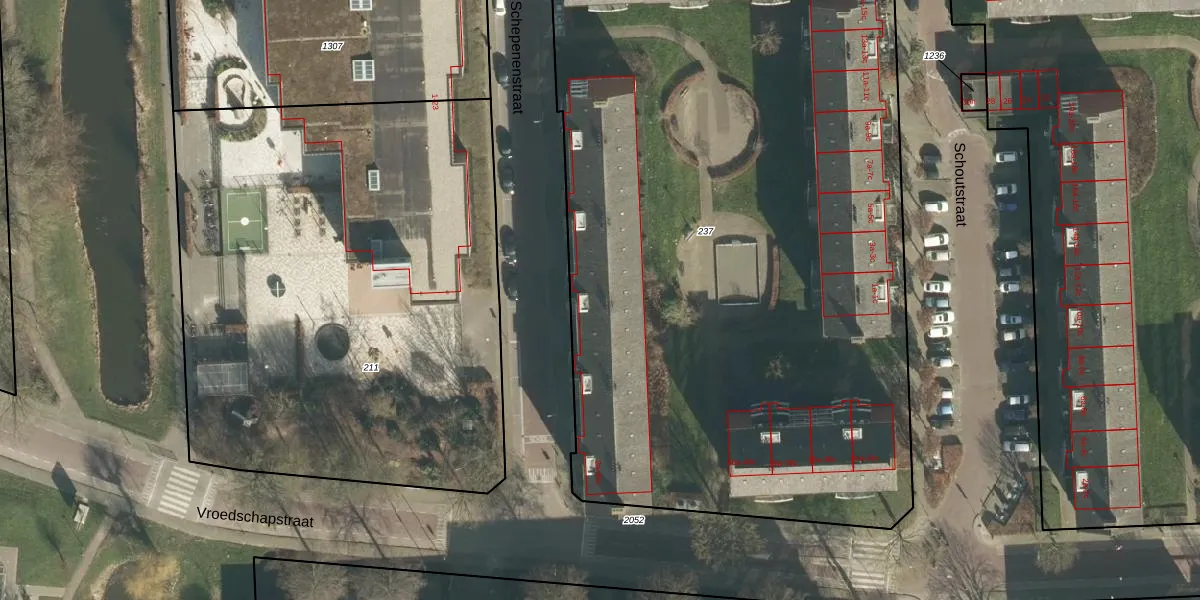 Het perceel waarop Schepenenstraat 18-a staat heeft een oppervlakte van 5675 m². Dit is een zeer groot perceel. De perceeloppervlakte wordt geregistreerd door het Kadaster. Gedetailleerde informatie over de maten van dit perceel kunt u vinden in het rapport Kadastrale kaart met maatvoering van Schepenenstraat 18-a.