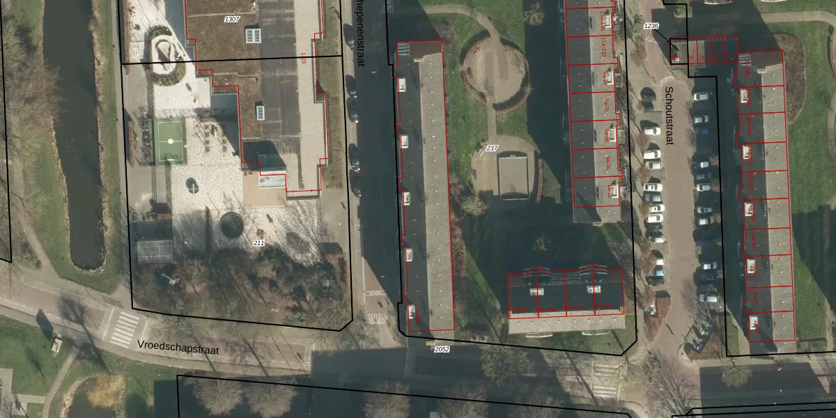 Het perceel waarop Schepenenstraat 18-c staat heeft een oppervlakte van 5675 m². Dit is een zeer groot perceel. De perceeloppervlakte wordt geregistreerd door het Kadaster. Gedetailleerde informatie over de maten van dit perceel kunt u vinden in het rapport Kadastrale kaart met maatvoering van Schepenenstraat 18-c.