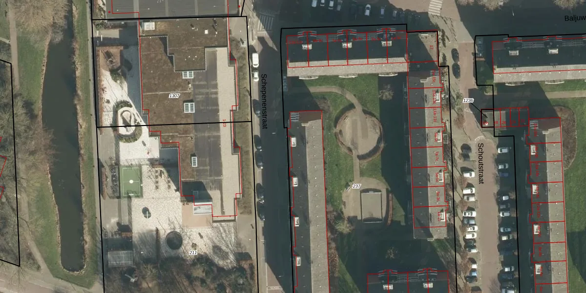 Het perceel waarop Schepenenstraat 32 staat heeft een oppervlakte van 5675 m². Dit is een zeer groot perceel. De perceeloppervlakte wordt geregistreerd door het Kadaster. Gedetailleerde informatie over de maten van dit perceel kunt u vinden in het rapport Kadastrale kaart met maatvoering van Schepenenstraat 32.