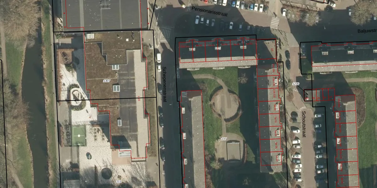 Het perceel waarop Schepenenstraat 36-a staat heeft een oppervlakte van 5675 m². Dit is een zeer groot perceel. De perceeloppervlakte wordt geregistreerd door het Kadaster. Gedetailleerde informatie over de maten van dit perceel kunt u vinden in het rapport Kadastrale kaart met maatvoering van Schepenenstraat 36-a.