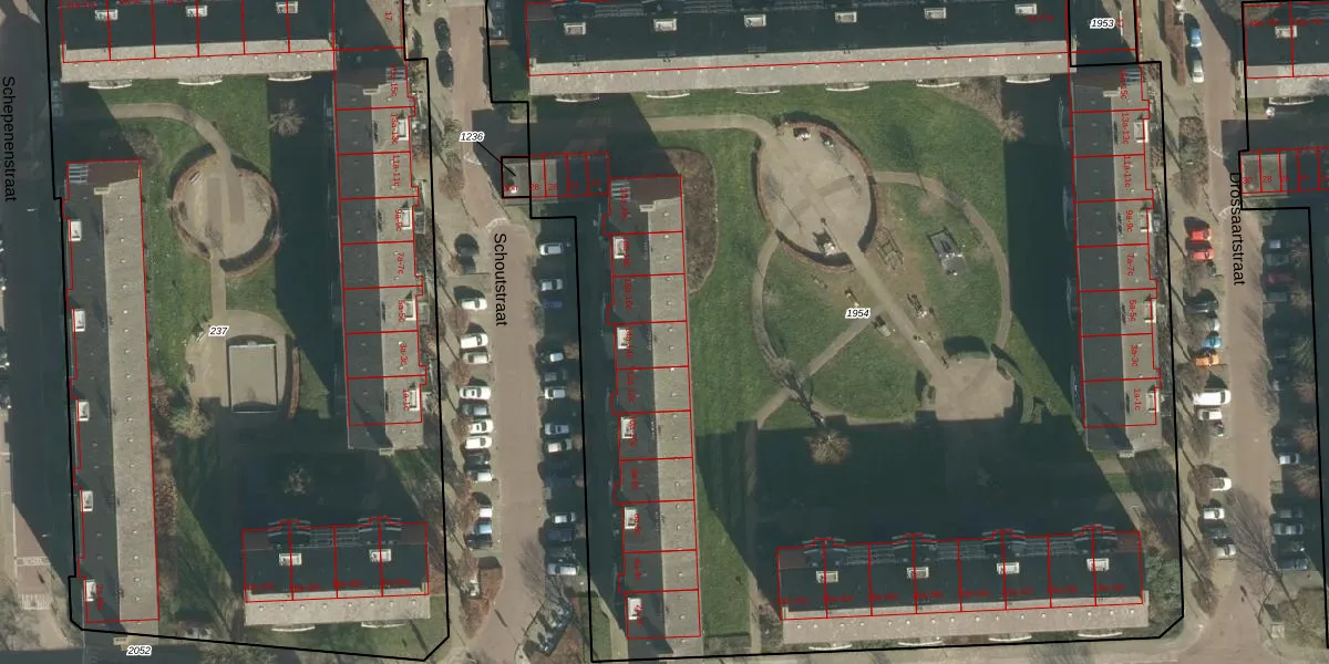 Het perceel waarop Schoutstraat 14-a staat heeft een oppervlakte van 9090 m². Dit is een zeer groot perceel. De perceeloppervlakte wordt geregistreerd door het Kadaster. Gedetailleerde informatie over de maten van dit perceel kunt u vinden in het rapport Kadastrale kaart met maatvoering van Schoutstraat 14-a.