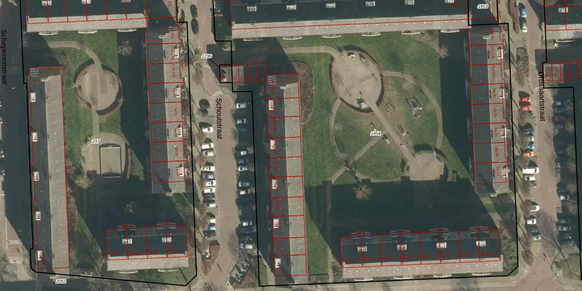 Het perceel waarop Schoutstraat 14-b staat heeft een oppervlakte van 9090 m². Dit is een zeer groot perceel. De perceeloppervlakte wordt geregistreerd door het Kadaster. Gedetailleerde informatie over de maten van dit perceel kunt u vinden in het rapport Kadastrale kaart met maatvoering van Schoutstraat 14-b.