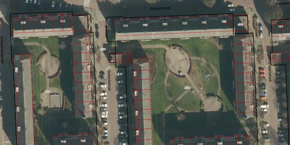 Het perceel waarop Schoutstraat 18-a staat heeft een oppervlakte van 9090 m². Dit is een zeer groot perceel. De perceeloppervlakte wordt geregistreerd door het Kadaster. Gedetailleerde informatie over de maten van dit perceel kunt u vinden in het rapport Kadastrale kaart met maatvoering van Schoutstraat 18-a.