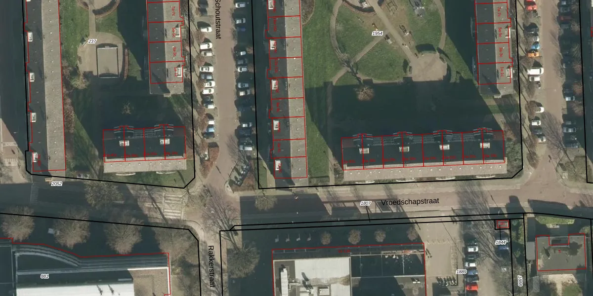 Het perceel waarop Schoutstraat 4-b staat heeft een oppervlakte van 9090 m². Dit is een zeer groot perceel. De perceeloppervlakte wordt geregistreerd door het Kadaster. Gedetailleerde informatie over de maten van dit perceel kunt u vinden in het rapport Kadastrale kaart met maatvoering van Schoutstraat 4-b.