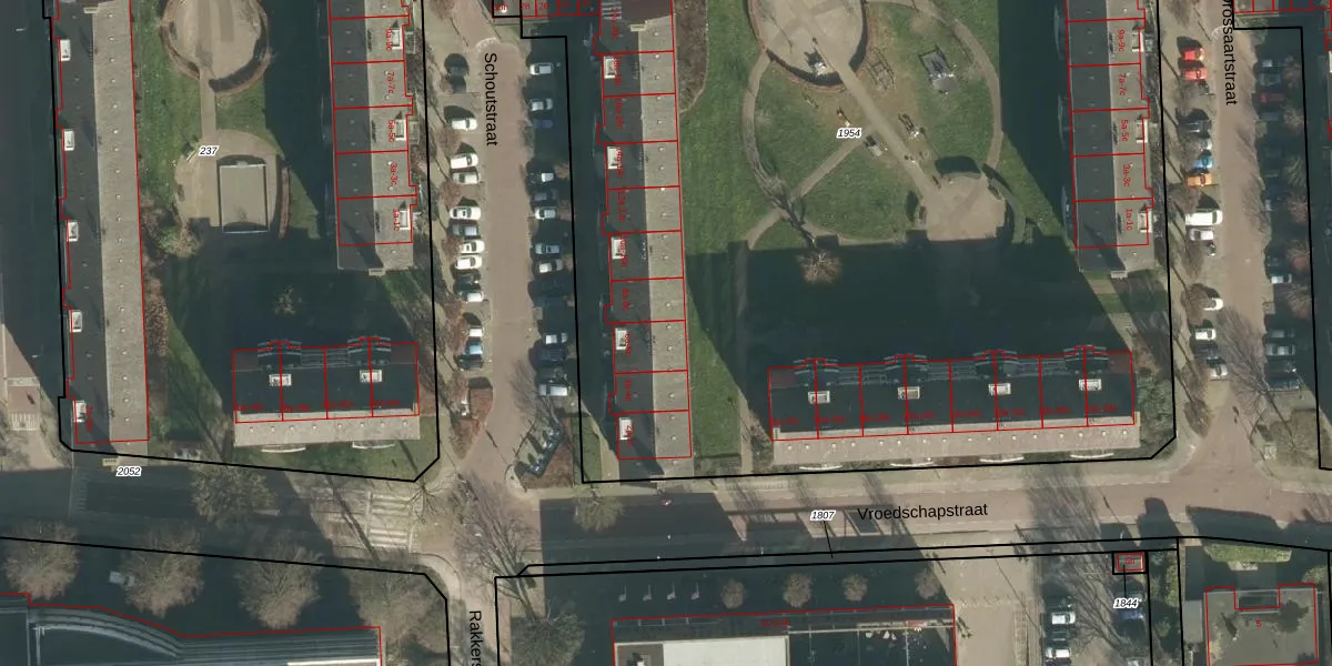 Het perceel waarop Schoutstraat 6-a staat heeft een oppervlakte van 9090 m². Dit is een zeer groot perceel. De perceeloppervlakte wordt geregistreerd door het Kadaster. Gedetailleerde informatie over de maten van dit perceel kunt u vinden in het rapport Kadastrale kaart met maatvoering van Schoutstraat 6-a.