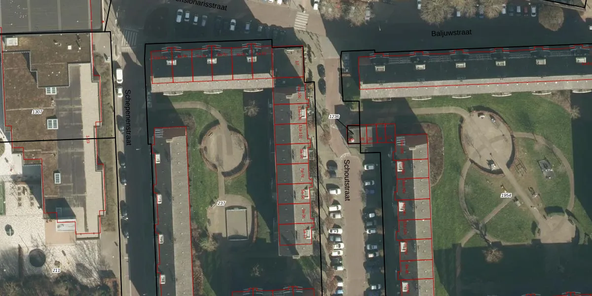 Het perceel waarop Schoutstraat 9-a staat heeft een oppervlakte van 5675 m². Dit is een zeer groot perceel. De perceeloppervlakte wordt geregistreerd door het Kadaster. Gedetailleerde informatie over de maten van dit perceel kunt u vinden in het rapport Kadastrale kaart met maatvoering van Schoutstraat 9-a.
