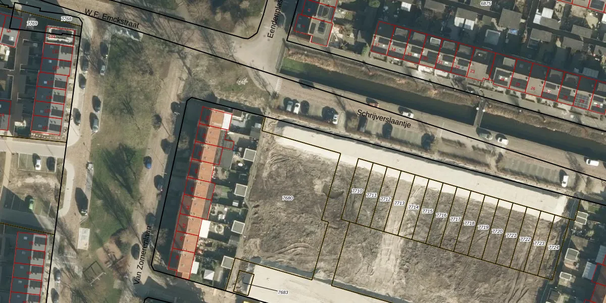 Schrijverslaantje 16-b is gelegen op kadastraal perceel GRC00A7680. Deze kadastrale aanduiding is uniek en wordt gebruikt door het Kadaster om eigendomsrechten en andere zakelijke rechten vast te leggen. Het perceel maakt onderdeel uit van de kadastrale gemeente Gorinchem.