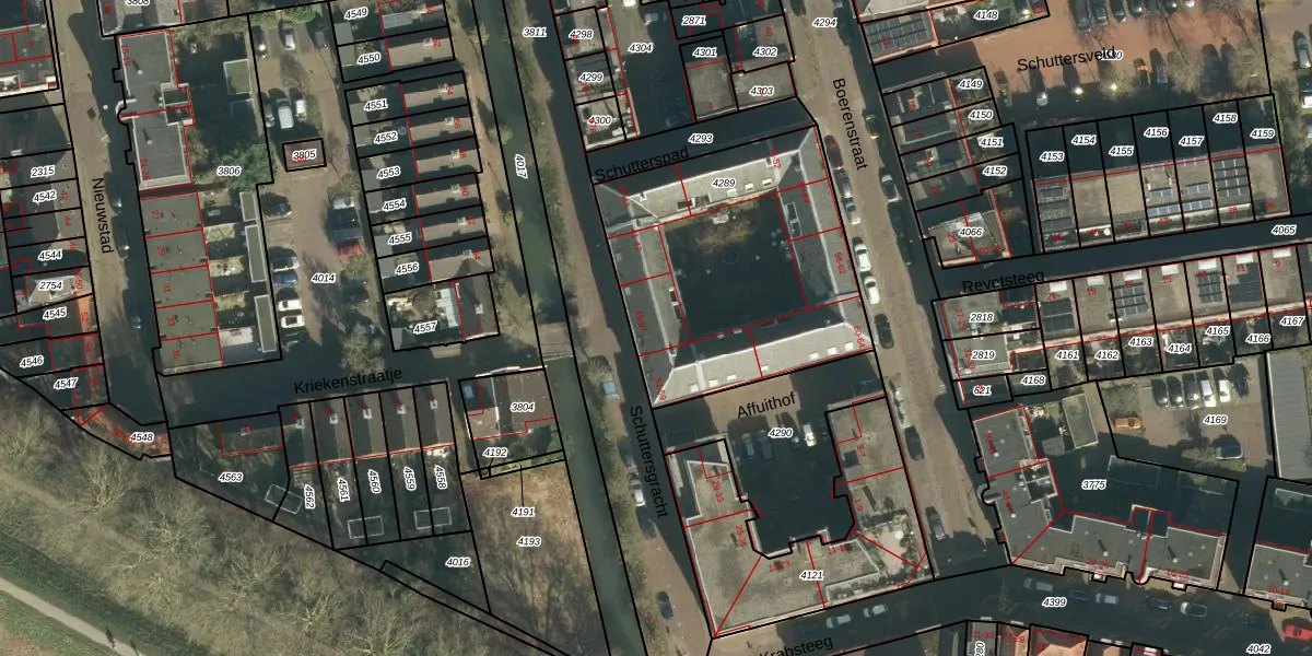 Schuttersgracht 53 is gelegen op kadastraal perceel GRC00D4289. Deze kadastrale aanduiding is uniek en wordt gebruikt door het Kadaster om eigendomsrechten en andere zakelijke rechten vast te leggen. Het perceel maakt onderdeel uit van de kadastrale gemeente Gorinchem.