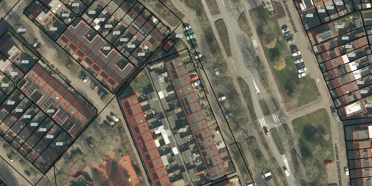 Het perceel waarop Simon Carmiggeltstraat 8 staat heeft een oppervlakte van 3105 m². Dit is een zeer groot perceel. De perceeloppervlakte wordt geregistreerd door het Kadaster. Gedetailleerde informatie over de maten van dit perceel kunt u vinden in het rapport Kadastrale kaart met maatvoering van Simon Carmiggeltstraat 8.
