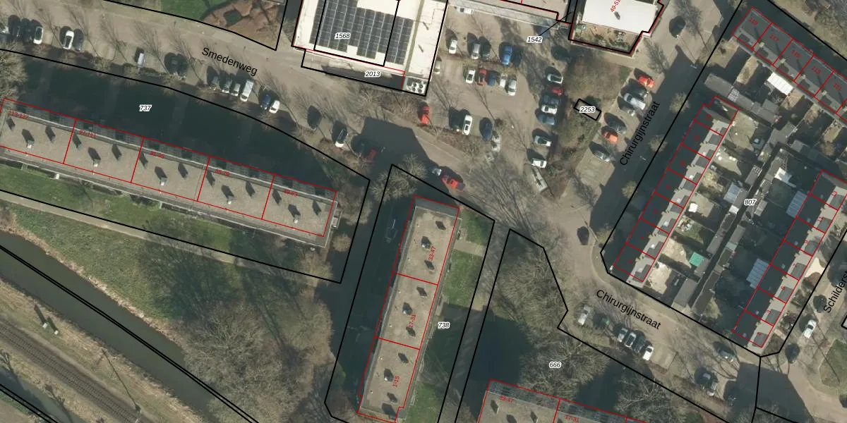 Smedenweg 39 is gelegen op kadastraal perceel GRC00E738. Deze kadastrale aanduiding is uniek en wordt gebruikt door het Kadaster om eigendomsrechten en andere zakelijke rechten vast te leggen. Het perceel maakt onderdeel uit van de kadastrale gemeente Gorinchem.