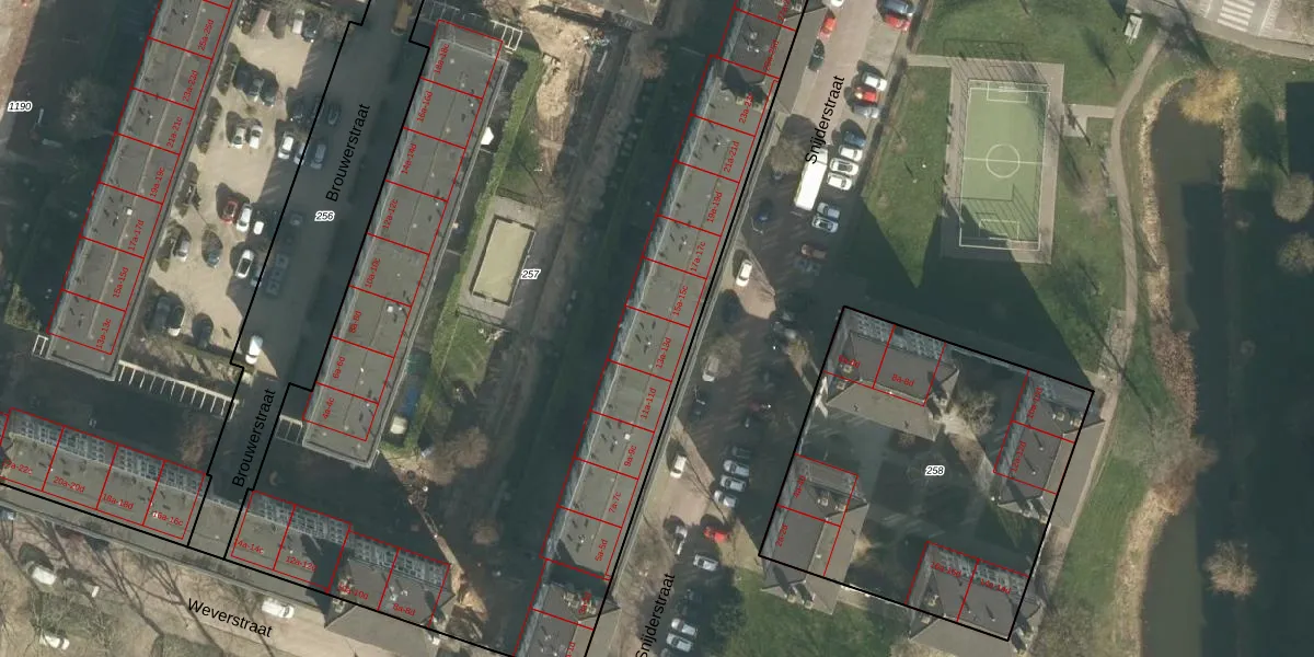 Het perceel waarop Snijderstraat 13-a staat heeft een oppervlakte van 6136 m². Dit is een zeer groot perceel. De perceeloppervlakte wordt geregistreerd door het Kadaster. Gedetailleerde informatie over de maten van dit perceel kunt u vinden in het rapport Kadastrale kaart met maatvoering van Snijderstraat 13-a.