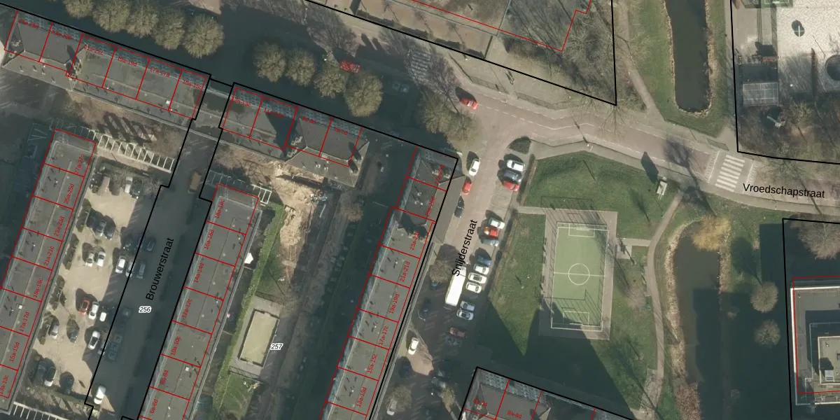 Het perceel waarop Snijderstraat 25-d staat heeft een oppervlakte van 6136 m². Dit is een zeer groot perceel. De perceeloppervlakte wordt geregistreerd door het Kadaster. Gedetailleerde informatie over de maten van dit perceel kunt u vinden in het rapport Kadastrale kaart met maatvoering van Snijderstraat 25-d.
