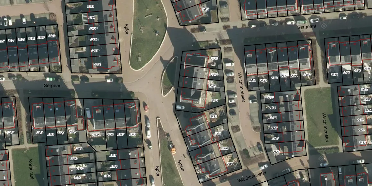 Gebruik de zoekbalk of klik op een perceel voor informatie over de adressen binnen dit perceel.