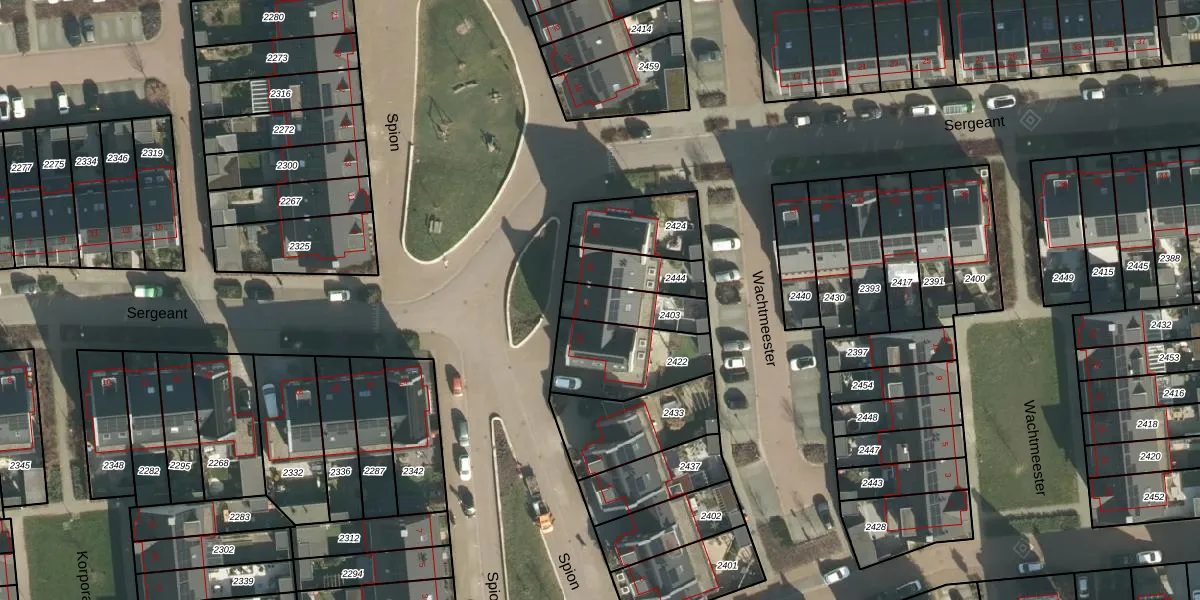 Gebruik de zoekbalk of klik op een perceel voor informatie over de adressen binnen dit perceel.