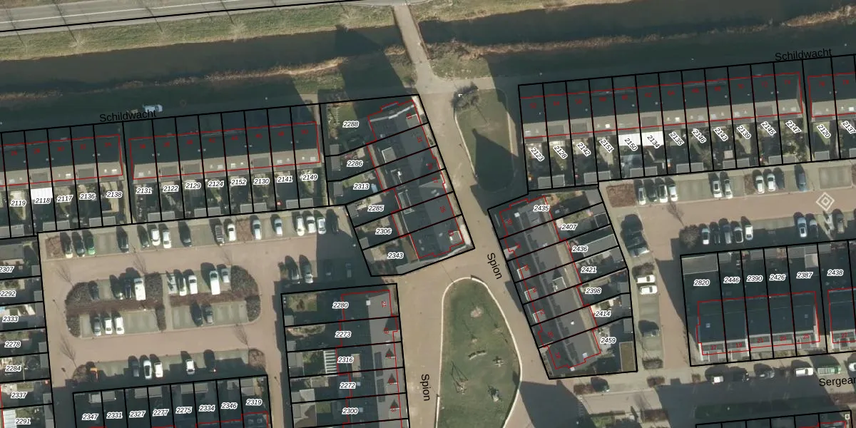 Gebruik de zoekbalk of klik op een perceel voor informatie over de adressen binnen dit perceel.