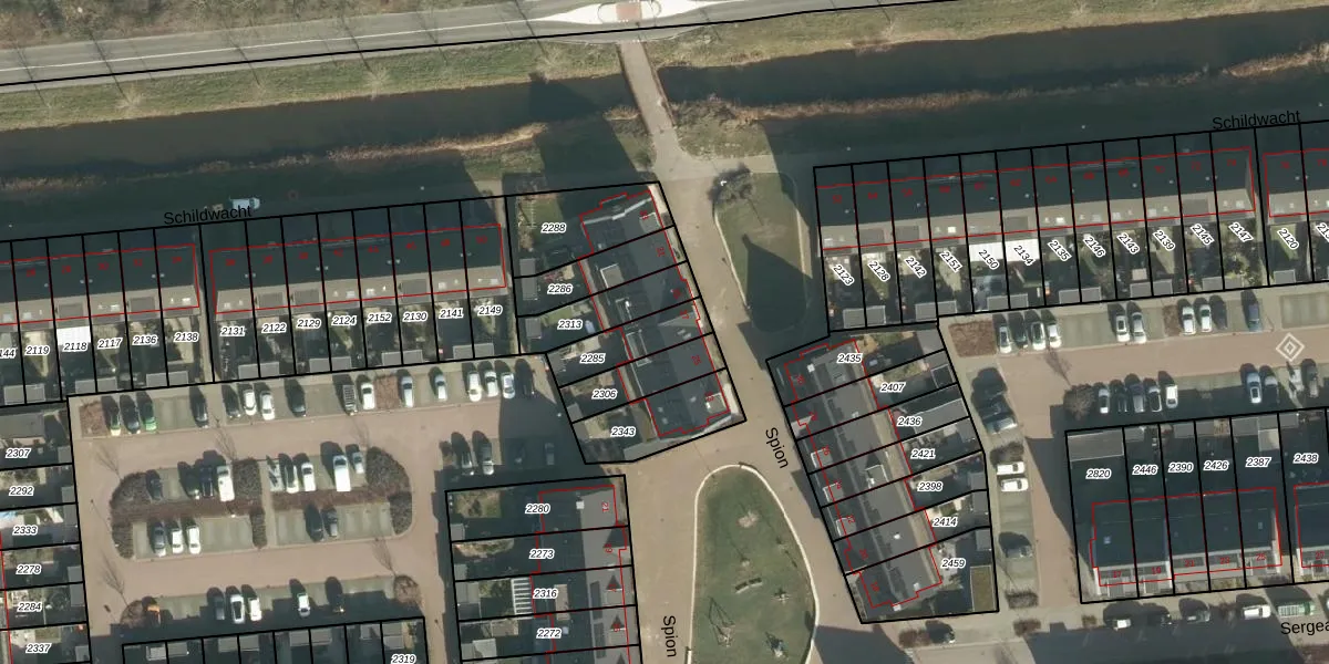 Gebruik de zoekbalk of klik op een perceel voor informatie over de adressen binnen dit perceel.