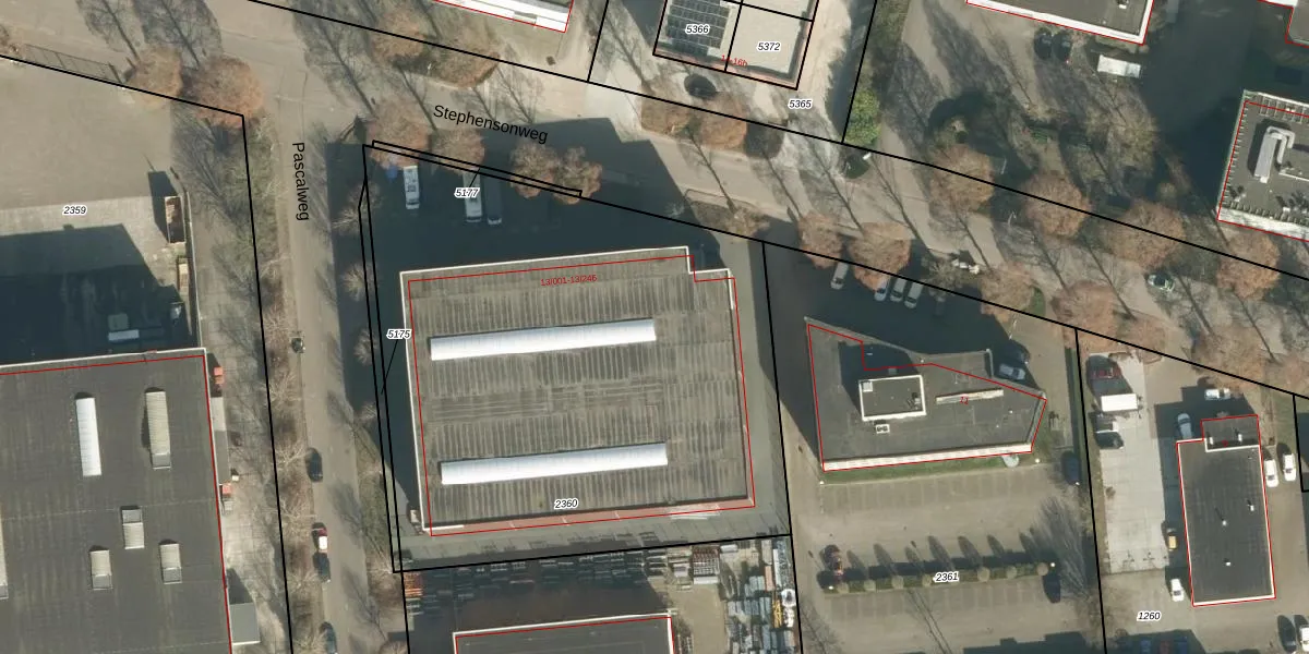 Het perceel waarop Stephensonweg 13-015 staat heeft een oppervlakte van 3295 m². Dit is een zeer groot perceel. De perceeloppervlakte wordt geregistreerd door het Kadaster. Gedetailleerde informatie over de maten van dit perceel kunt u vinden in het rapport Kadastrale kaart met maatvoering van Stephensonweg 13-015.