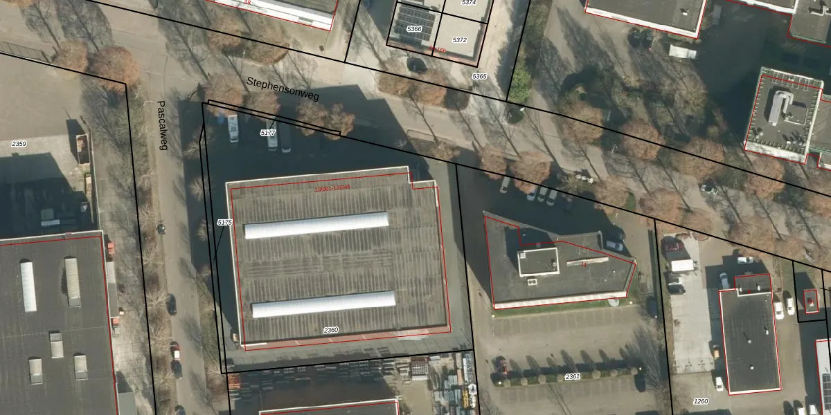 Het perceel waarop Stephensonweg 13-202 staat heeft een oppervlakte van 3295 m². Dit is een zeer groot perceel. De perceeloppervlakte wordt geregistreerd door het Kadaster. Gedetailleerde informatie over de maten van dit perceel kunt u vinden in het rapport Kadastrale kaart met maatvoering van Stephensonweg 13-202.