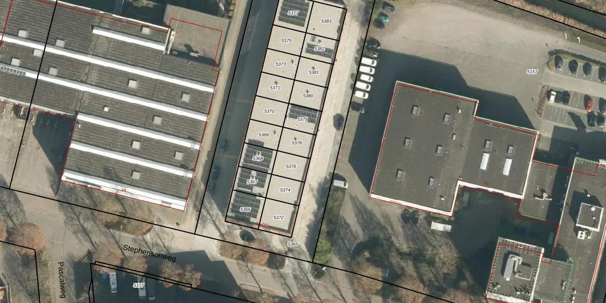 Gebruik de zoekbalk of klik op een perceel voor informatie over de adressen binnen dit perceel.