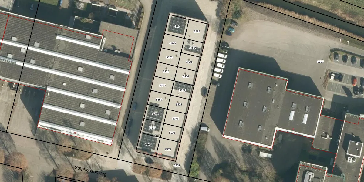 Stephensonweg 14-d is gelegen op kadastraal perceel GRC00F5379. Deze kadastrale aanduiding is uniek en wordt gebruikt door het Kadaster om eigendomsrechten en andere zakelijke rechten vast te leggen. Het perceel maakt onderdeel uit van de kadastrale gemeente Gorinchem.