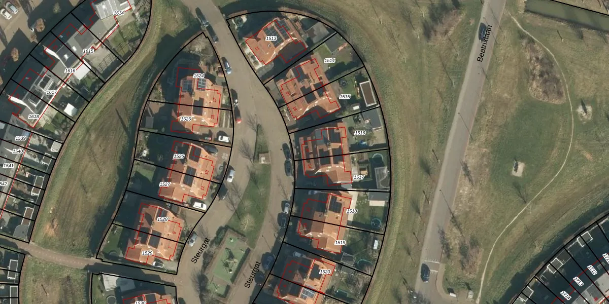 Het perceel waarop Steurgat 16 staat heeft een oppervlakte van 370 m². Dit is een groot perceel. De perceeloppervlakte wordt geregistreerd door het Kadaster. Gedetailleerde informatie over de maten van dit perceel kunt u vinden in het rapport Kadastrale kaart met maatvoering van Steurgat 16.