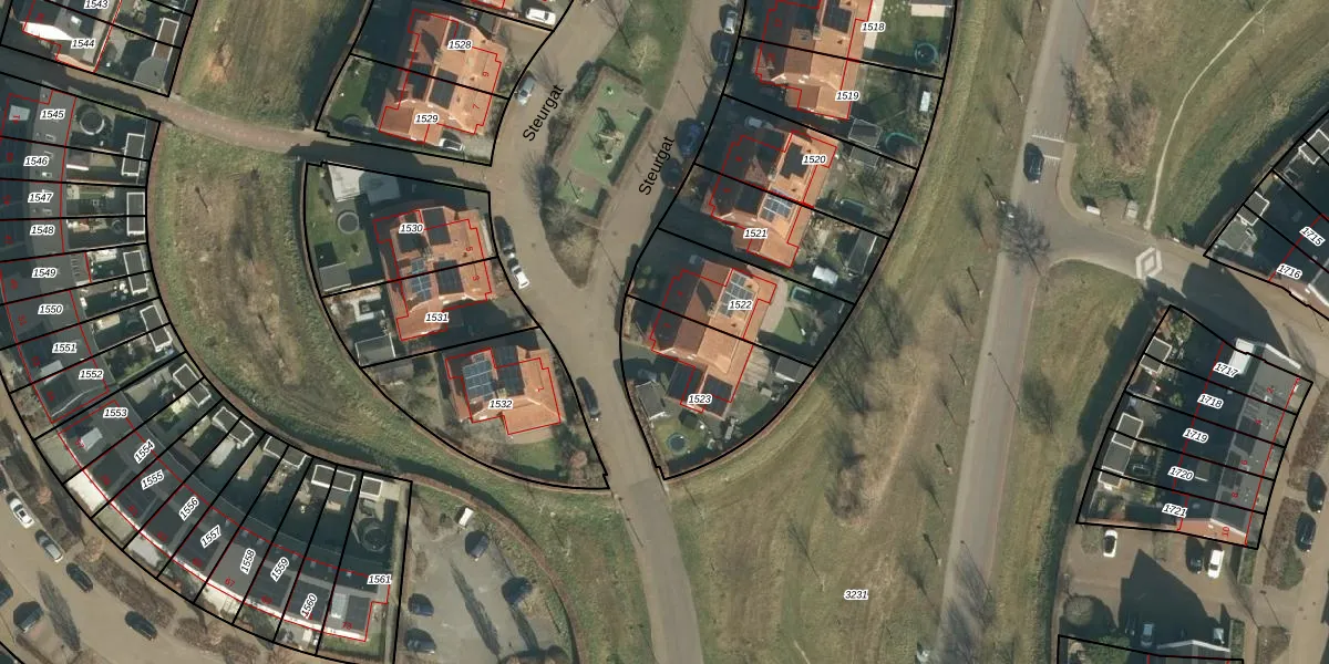 Het perceel waarop Steurgat 2 staat heeft een oppervlakte van 465 m². Dit is een groot perceel. De perceeloppervlakte wordt geregistreerd door het Kadaster. Gedetailleerde informatie over de maten van dit perceel kunt u vinden in het rapport Kadastrale kaart met maatvoering van Steurgat 2.