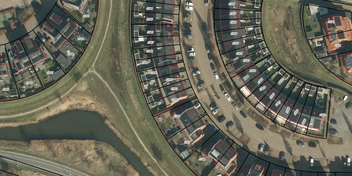 Steurgat 84 is gelegen op kadastraal perceel GRC00P1592. Deze kadastrale aanduiding is uniek en wordt gebruikt door het Kadaster om eigendomsrechten en andere zakelijke rechten vast te leggen. Het perceel maakt onderdeel uit van de kadastrale gemeente Gorinchem.