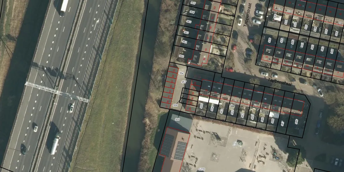 Tapperstraat 45 is gelegen op kadastraal perceel GRC00E956. Deze kadastrale aanduiding is uniek en wordt gebruikt door het Kadaster om eigendomsrechten en andere zakelijke rechten vast te leggen. Het perceel maakt onderdeel uit van de kadastrale gemeente Gorinchem.