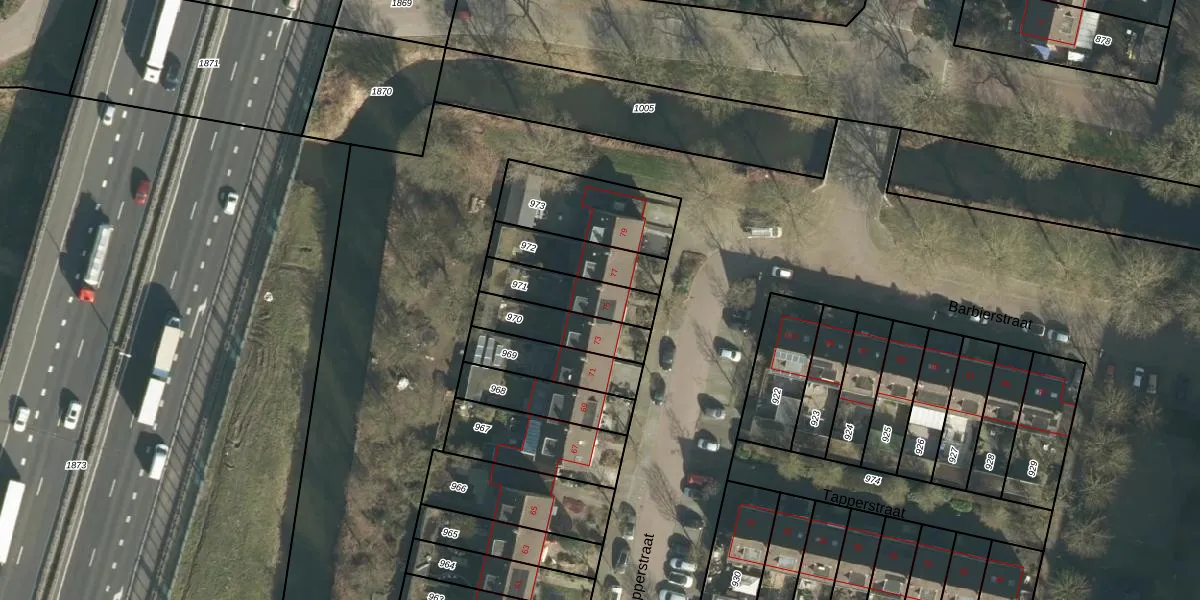 Tapperstraat 75 is gelegen op kadastraal perceel GRC00E971. Deze kadastrale aanduiding is uniek en wordt gebruikt door het Kadaster om eigendomsrechten en andere zakelijke rechten vast te leggen. Het perceel maakt onderdeel uit van de kadastrale gemeente Gorinchem.
