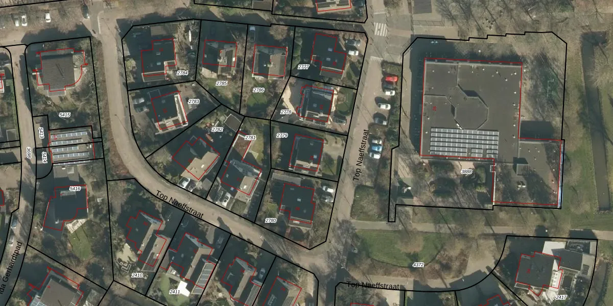 Het perceel waarop Top Naeffstraat 21 staat heeft een oppervlakte van 375 m². Dit is een groot perceel. De perceeloppervlakte wordt geregistreerd door het Kadaster. Gedetailleerde informatie over de maten van dit perceel kunt u vinden in het rapport Kadastrale kaart met maatvoering van Top Naeffstraat 21.