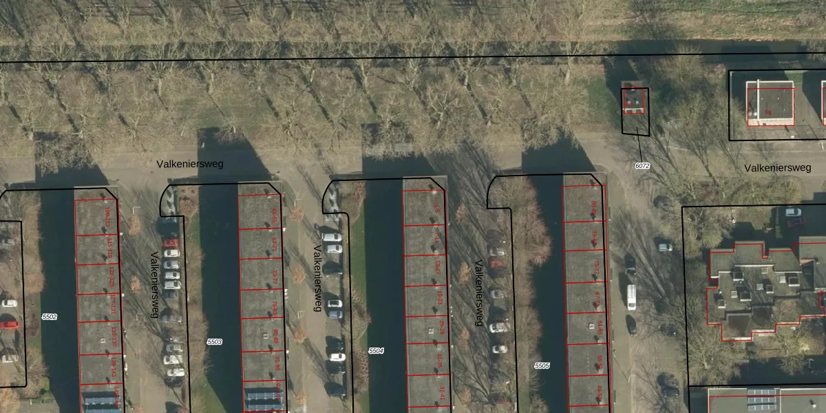 Valkeniersweg 5 is gelegen op kadastraal perceel GRC00A5504. Deze kadastrale aanduiding is uniek en wordt gebruikt door het Kadaster om eigendomsrechten en andere zakelijke rechten vast te leggen. Het perceel maakt onderdeel uit van de kadastrale gemeente Gorinchem.
