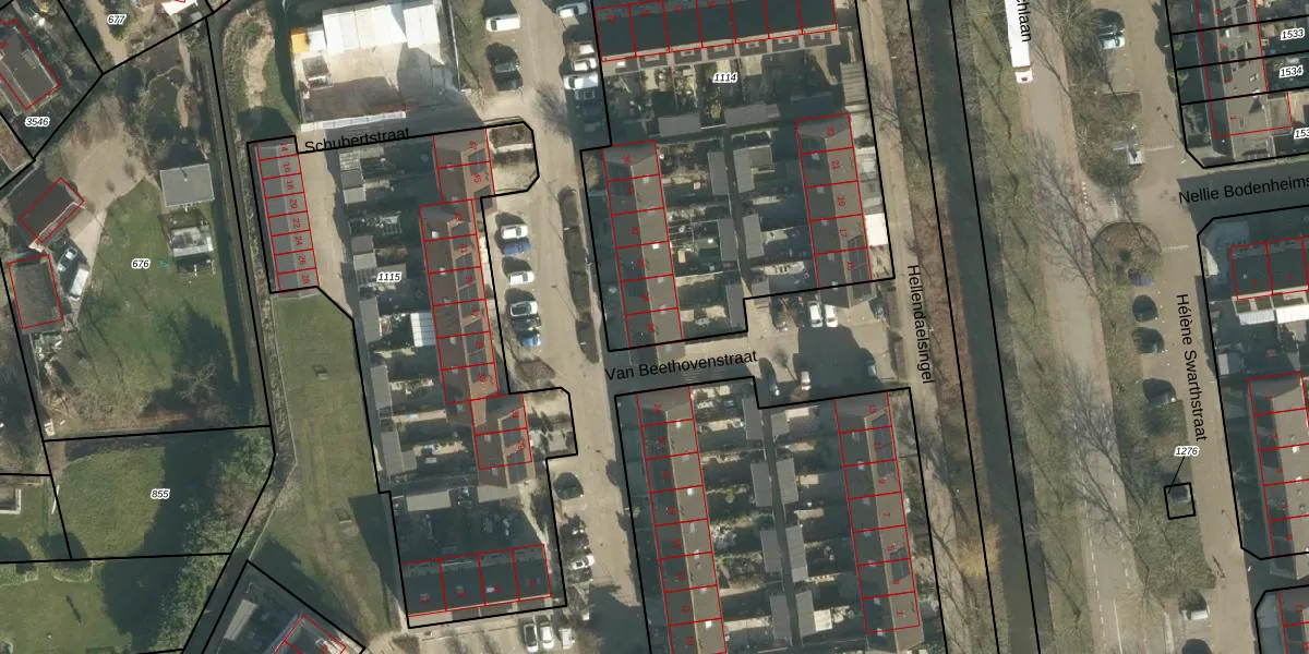 Het perceel waarop Van Beethovenstraat 26 staat heeft een oppervlakte van 2232 m². Dit is een zeer groot perceel. De perceeloppervlakte wordt geregistreerd door het Kadaster. Gedetailleerde informatie over de maten van dit perceel kunt u vinden in het rapport Kadastrale kaart met maatvoering van Van Beethovenstraat 26.