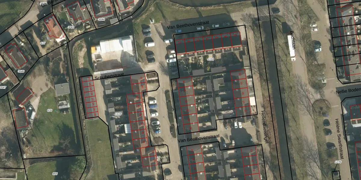 Het perceel waarop Van Beethovenstraat 34 staat heeft een oppervlakte van 2232 m². Dit is een zeer groot perceel. De perceeloppervlakte wordt geregistreerd door het Kadaster. Gedetailleerde informatie over de maten van dit perceel kunt u vinden in het rapport Kadastrale kaart met maatvoering van Van Beethovenstraat 34.