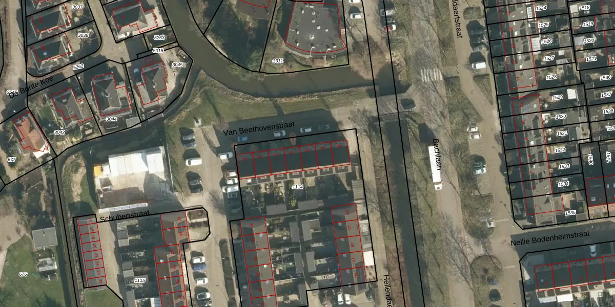 Het perceel waarop Van Beethovenstraat 46 staat heeft een oppervlakte van 2232 m². Dit is een zeer groot perceel. De perceeloppervlakte wordt geregistreerd door het Kadaster. Gedetailleerde informatie over de maten van dit perceel kunt u vinden in het rapport Kadastrale kaart met maatvoering van Van Beethovenstraat 46.