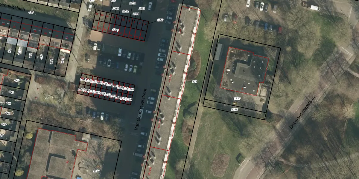 Het perceel waarop Van Goudoeverstraat 109 staat heeft een oppervlakte van 2627 m². Dit is een zeer groot perceel. De perceeloppervlakte wordt geregistreerd door het Kadaster. Gedetailleerde informatie over de maten van dit perceel kunt u vinden in het rapport Kadastrale kaart met maatvoering van Van Goudoeverstraat 109.