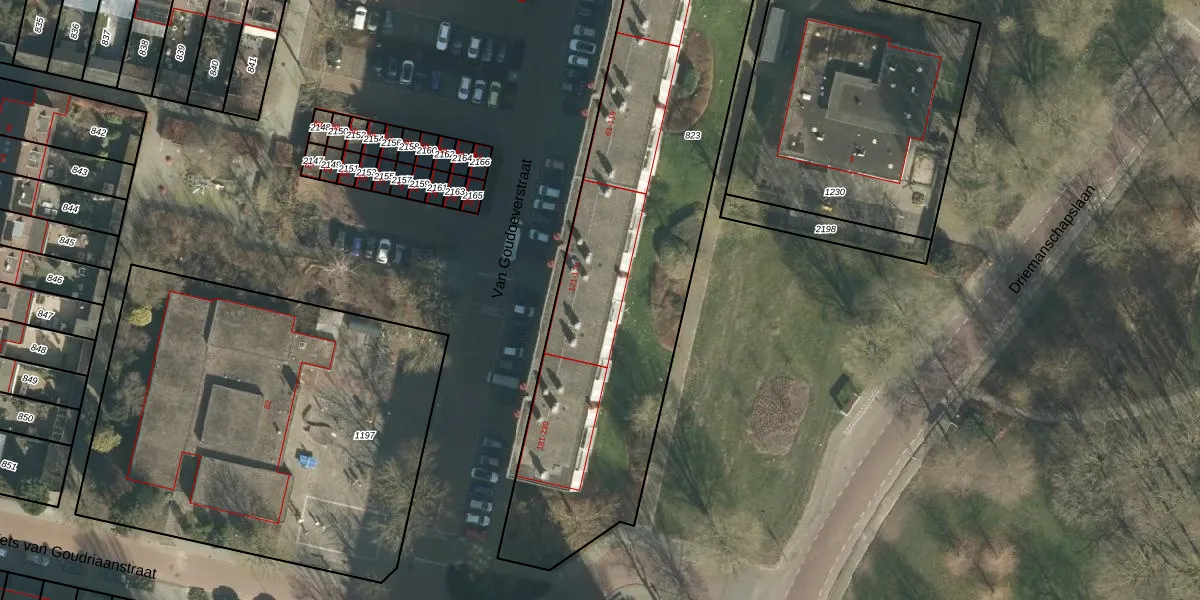 Het perceel waarop Van Goudoeverstraat 153 staat heeft een oppervlakte van 2627 m². Dit is een zeer groot perceel. De perceeloppervlakte wordt geregistreerd door het Kadaster. Gedetailleerde informatie over de maten van dit perceel kunt u vinden in het rapport Kadastrale kaart met maatvoering van Van Goudoeverstraat 153.