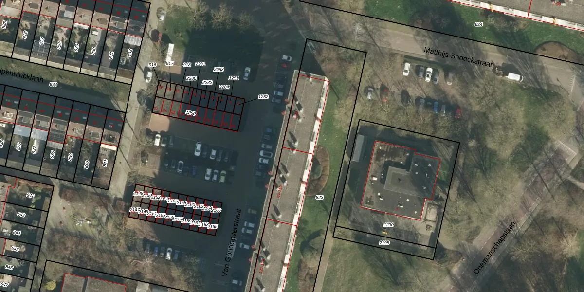 Het perceel waarop Van Goudoeverstraat 19 staat heeft een oppervlakte van 2627 m². Dit is een zeer groot perceel. De perceeloppervlakte wordt geregistreerd door het Kadaster. Gedetailleerde informatie over de maten van dit perceel kunt u vinden in het rapport Kadastrale kaart met maatvoering van Van Goudoeverstraat 19.