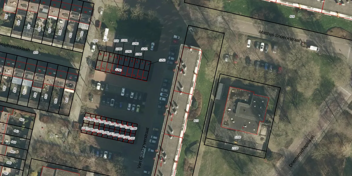 Het perceel waarop Van Goudoeverstraat 21 staat heeft een oppervlakte van 2627 m². Dit is een zeer groot perceel. De perceeloppervlakte wordt geregistreerd door het Kadaster. Gedetailleerde informatie over de maten van dit perceel kunt u vinden in het rapport Kadastrale kaart met maatvoering van Van Goudoeverstraat 21.