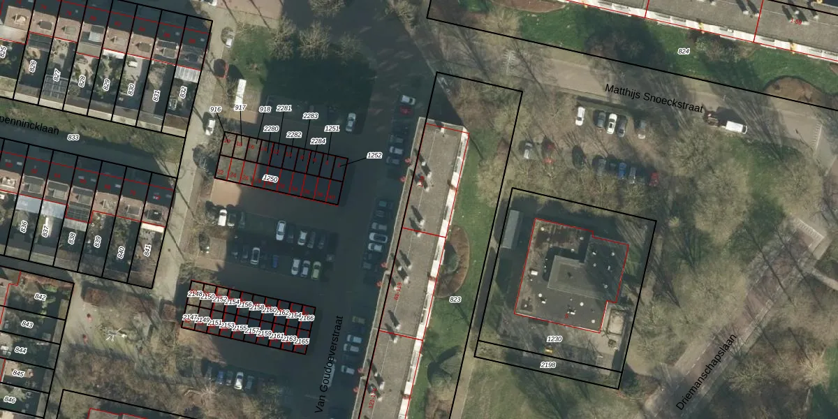 Het perceel waarop Van Goudoeverstraat 37 staat heeft een oppervlakte van 2627 m². Dit is een zeer groot perceel. De perceeloppervlakte wordt geregistreerd door het Kadaster. Gedetailleerde informatie over de maten van dit perceel kunt u vinden in het rapport Kadastrale kaart met maatvoering van Van Goudoeverstraat 37.