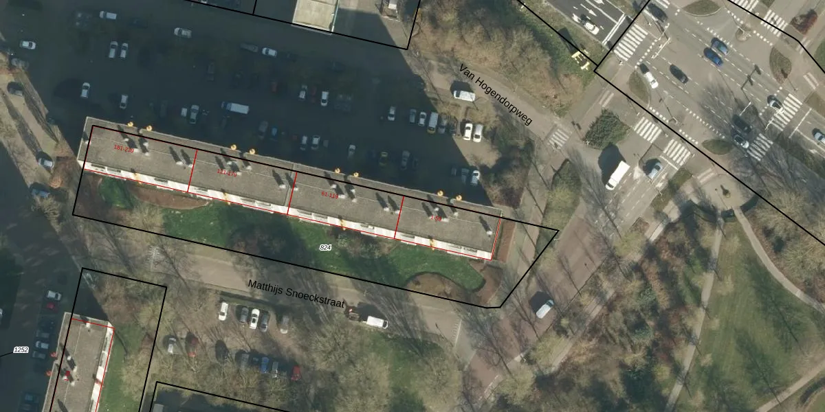 Het perceel waarop Van Hogendorpweg 1 staat heeft een oppervlakte van 2454 m². Dit is een zeer groot perceel. De perceeloppervlakte wordt geregistreerd door het Kadaster. Gedetailleerde informatie over de maten van dit perceel kunt u vinden in het rapport Kadastrale kaart met maatvoering van Van Hogendorpweg 1.
