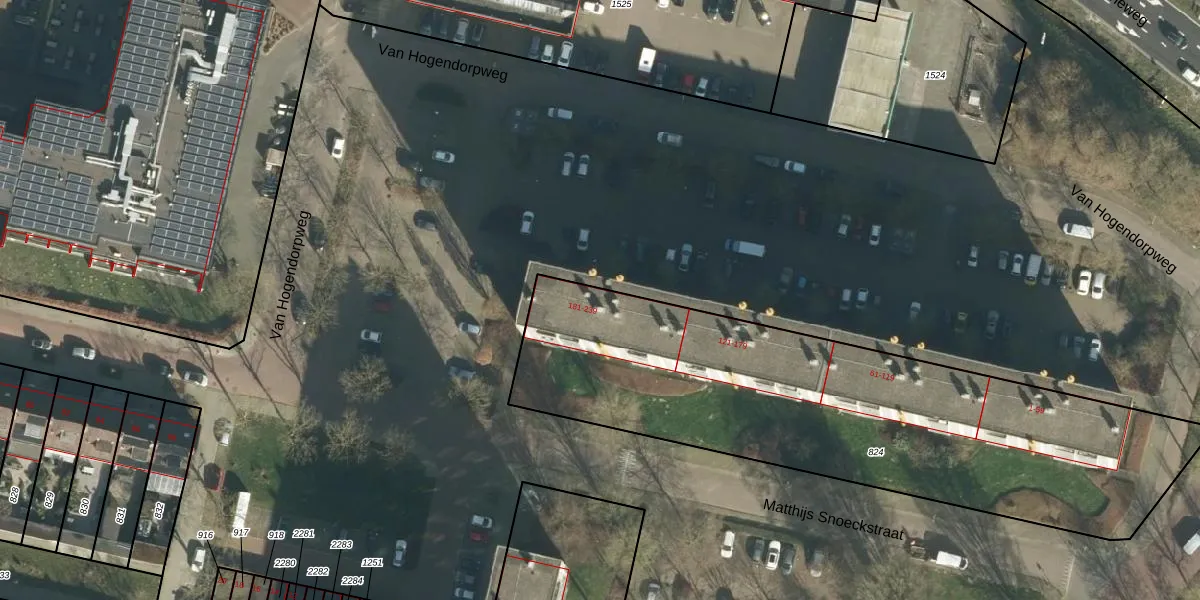 Het perceel waarop Van Hogendorpweg 223 staat heeft een oppervlakte van 2454 m². Dit is een zeer groot perceel. De perceeloppervlakte wordt geregistreerd door het Kadaster. Gedetailleerde informatie over de maten van dit perceel kunt u vinden in het rapport Kadastrale kaart met maatvoering van Van Hogendorpweg 223.